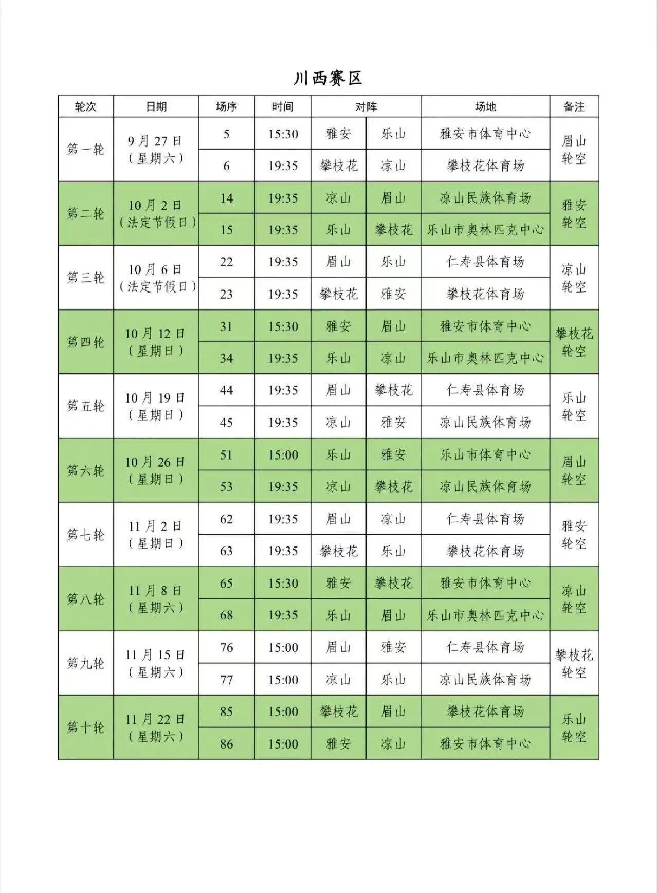 9月11日,四川省城市足球联赛(川超联赛)的分区赛赛程公布,比赛将从9月20日踢到11月底。