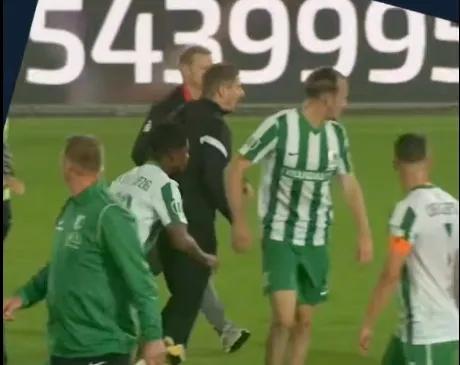 一些人直接朝客队看台方向冲去,另一些则追向准备向远征军致意的化学莱比锡球员。场面几度失控,在混乱中,有几位化学莱比锡队球员遭遇了主队球迷的攻击,但好在并无大碍。随后客队球员在安保人员护送下被护送至球员通道,最终仓促退回更衣室。