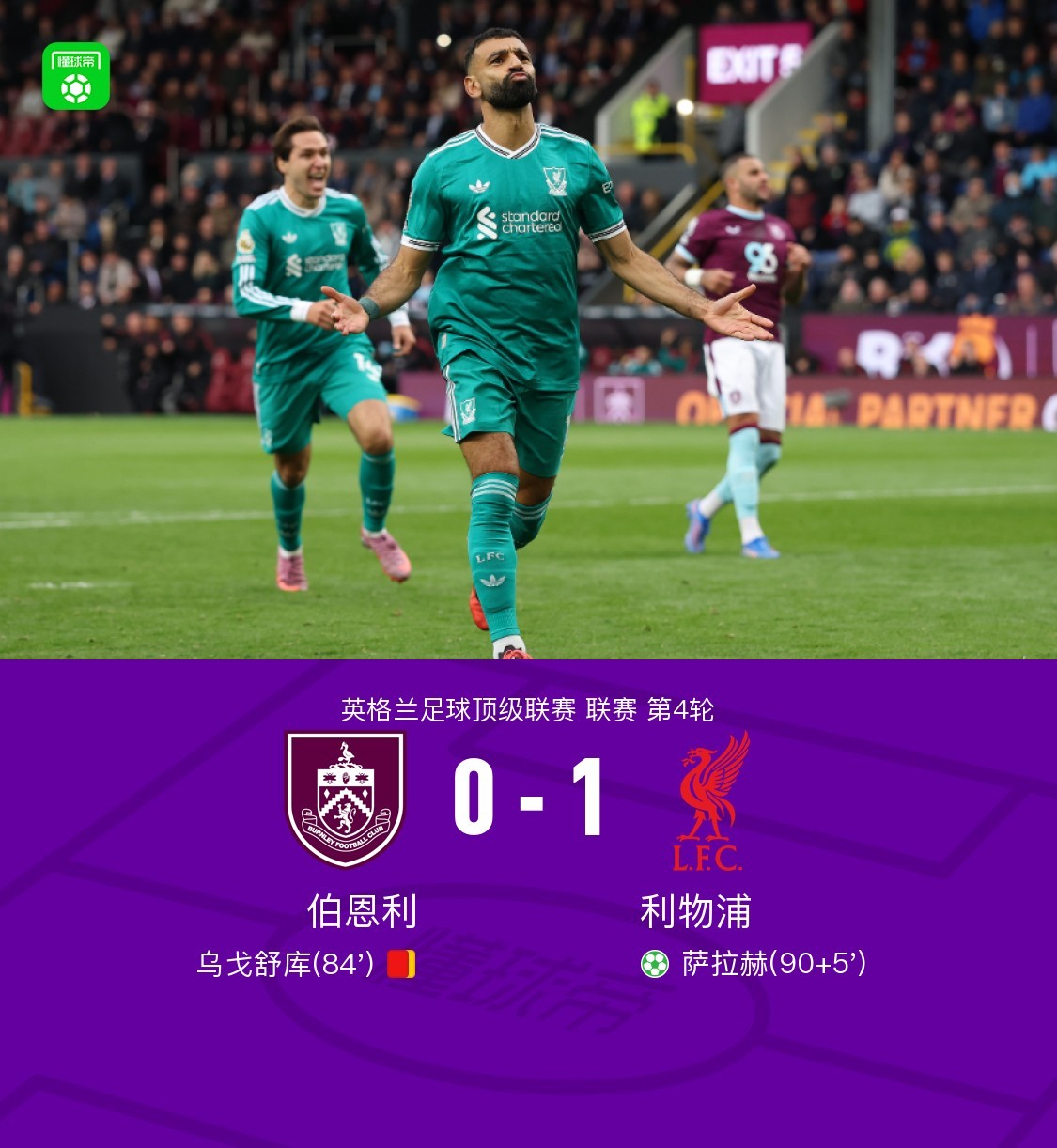 9月14日,英格兰足球顶级联赛第4轮,伯恩利坐镇主场迎战利物浦。上半场,乌戈舒库放铲麦卡利斯特染黄,凯尔凯兹假摔染黄后被换下,埃基蒂克造险;下半场,乌戈舒库因对维尔茨犯规领到第二张黄牌被罚下场。补时第5分钟,弗林蓬制造点球,萨拉赫主罚点球命中完成绝杀。最终利物浦1-0客胜伯恩利,豪取英超四连胜。