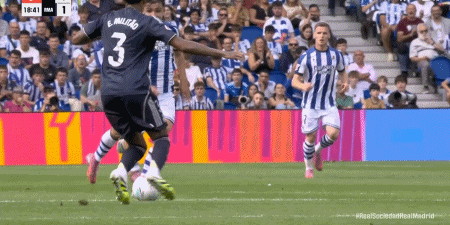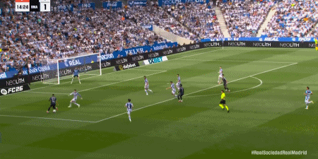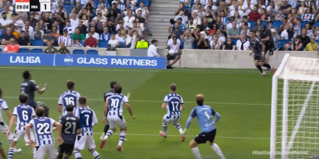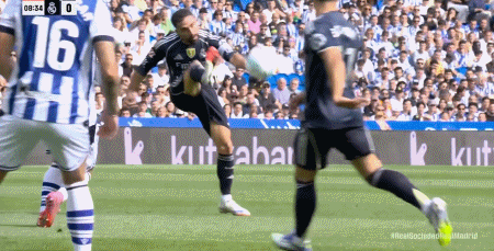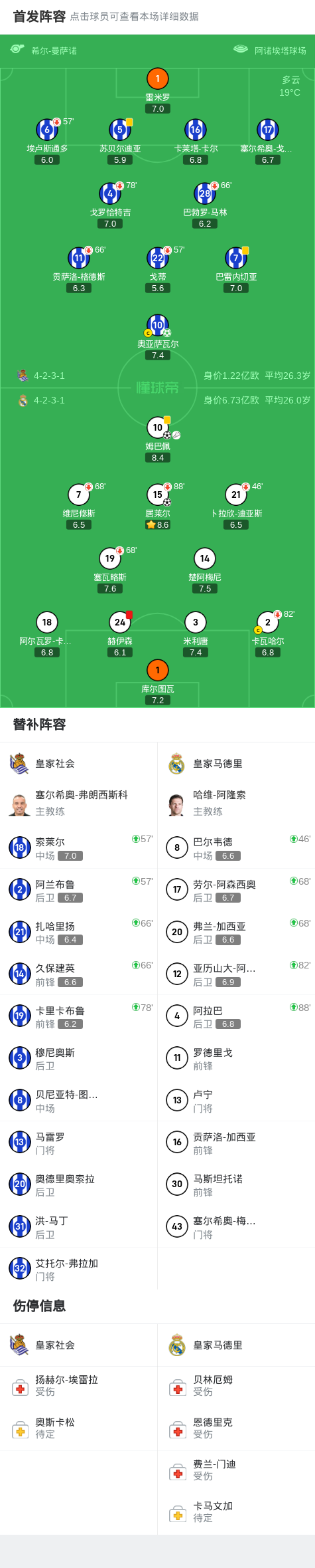 北京时间9月13日晚间22:15,西甲联赛第4轮,皇家马德里做客阿诺埃塔球场,挑战皇家社会。上半场,居莱尔破门被吹,姆巴佩建功,雷米罗屡现神扑,赫伊森染红,姆巴佩助攻居莱尔扩大比分。下半场,楚阿梅尼险些自摆乌龙,卡瓦哈尔手球送点,奥亚萨瓦尔点射扳回一城,索莱尔失良机。最终,皇家社会1-2皇家马德里。