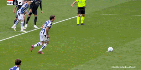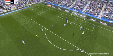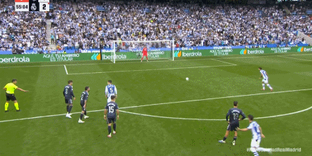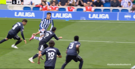 第55分钟,卡瓦哈尔手球送点,奥亚萨瓦尔点球扳回一城,皇家社会1-2