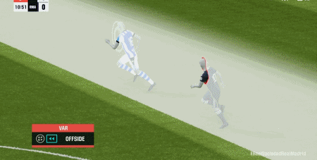 第11分钟,通过半自动越位系统显示,姆巴佩越位毫厘之间