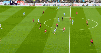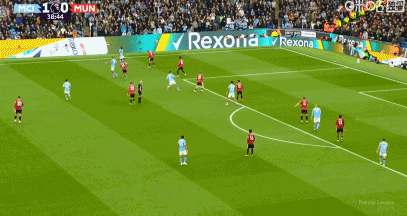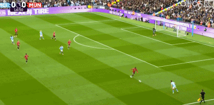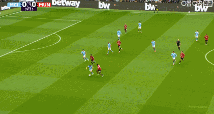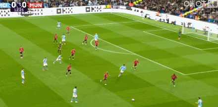 第18分钟,多库精妙传中,福登头球顶进后点!曼城1-0领先曼联
