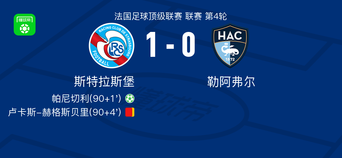 北京时间9月14日法国足球顶级联赛 联赛 第4轮,斯特拉斯堡主场对阵勒阿弗尔。斯特拉斯堡帕尼切利破门。最终比分斯特拉斯堡 1–0 勒阿弗尔。