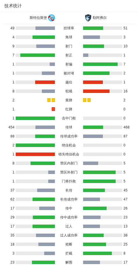 下半场补时第4分钟,斯特拉斯堡球队卢卡斯-赫格斯贝里吃到第二张黄牌。