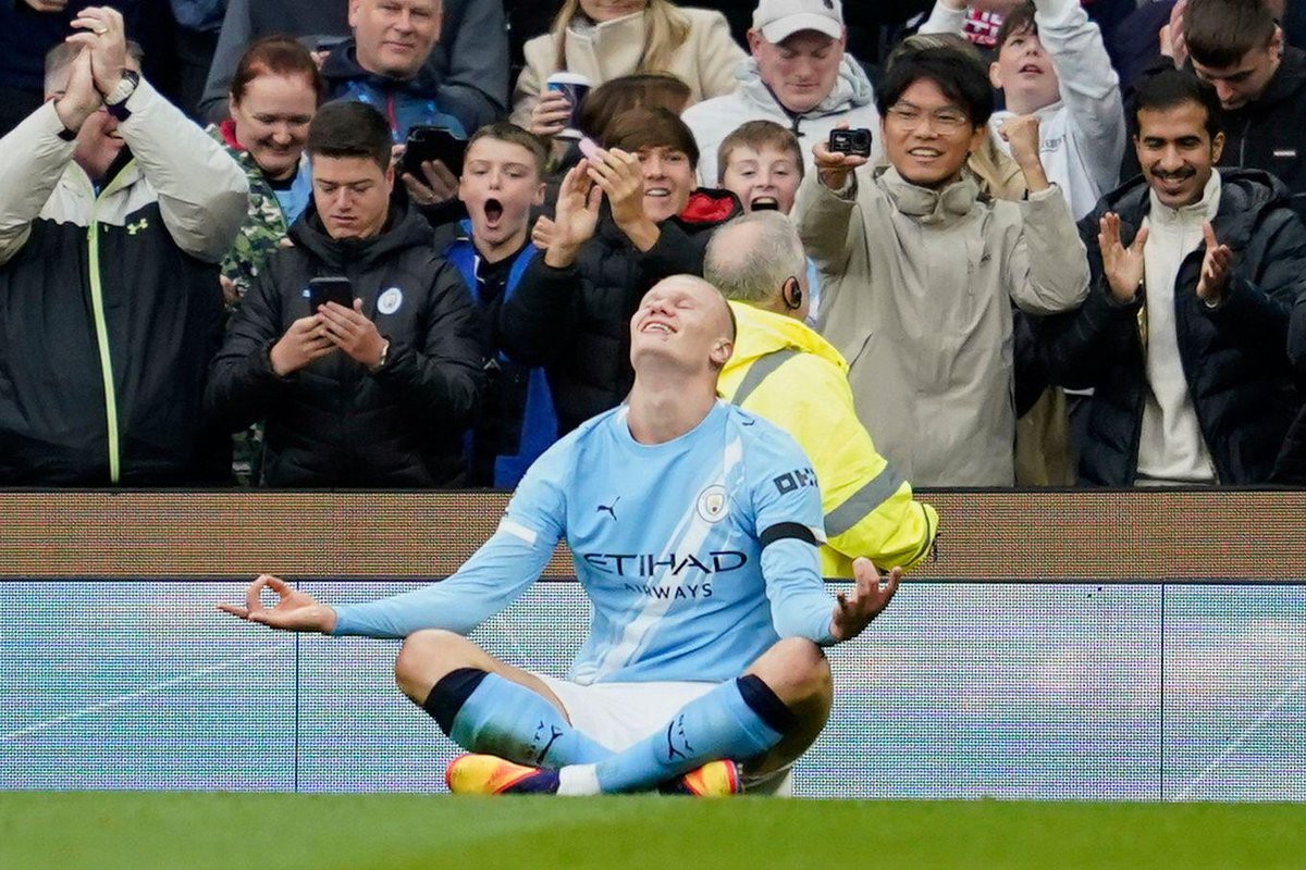 此役主场对阵曼联,哈兰德在下半场上演梅开二度。