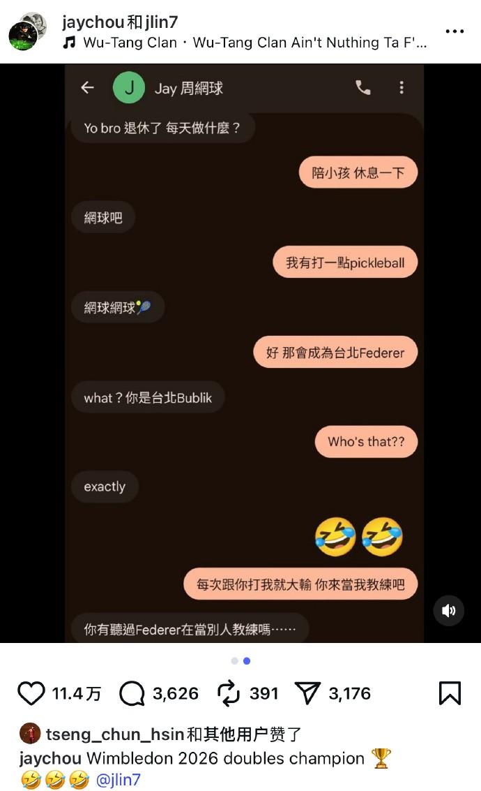 9月15日,周杰伦、林书豪在社交平台内容更新,晒出两人背靠背站在网球场合影和聊天截图,并配文:Wimbledon 2026 doubles champion(温布尔登 2026双打冠军)。 Your RSS reader does not support video playback. 视频源自东方体育日报 文章导航 世体:巴萨计划在10月22日对奥林匹亚科斯的比赛中回归诺坎普 马尔基尼奥斯:巴尔科拉是特别的球员;我们必须保持对更多荣誉的渴望