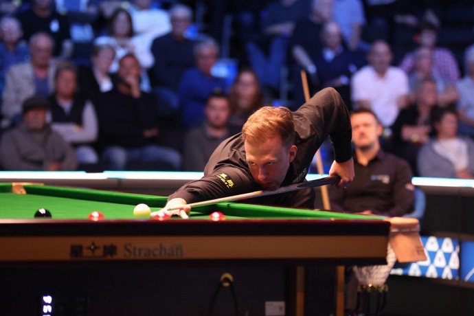 比赛中,特鲁姆普打出两杆破百(107、130)和一杆50+(55),连胜四局以4-0的比分战胜迈克尔-霍尔特顺利晋级,他的生涯破百数来到了1101次。
