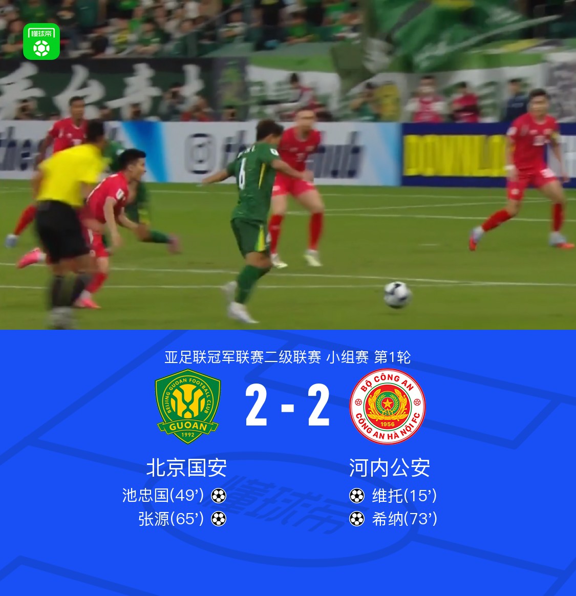 北京时间9月18日,亚足联冠军联赛二级联赛小组赛首轮,北京国安与河内公安展开较量。上半场,河内公安由维托率先打破僵局。下半场易边再战,张源助攻池忠国扳平比分。随后,张源接到对手门将送大礼将比分反超。之后,维托随后助攻希纳破门将比分拉平。最终双方战成2比2平局。