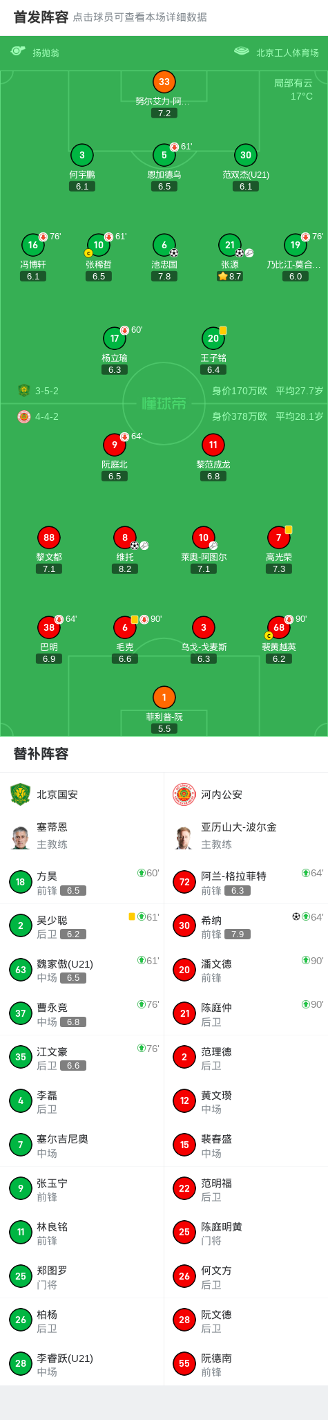 第15分钟,维托禁区外打门,努尔艾力反应不及,国安0-1河内公安