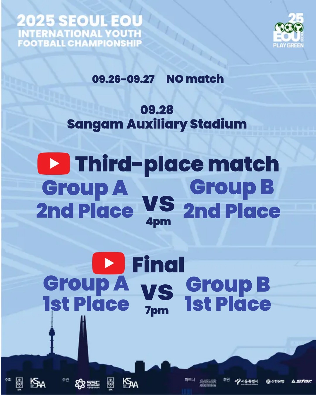 比赛将于9月20日开始进行,决赛将于9月28日举行,两个小组的第一将角逐冠军,两个小组第二将角逐第三名。