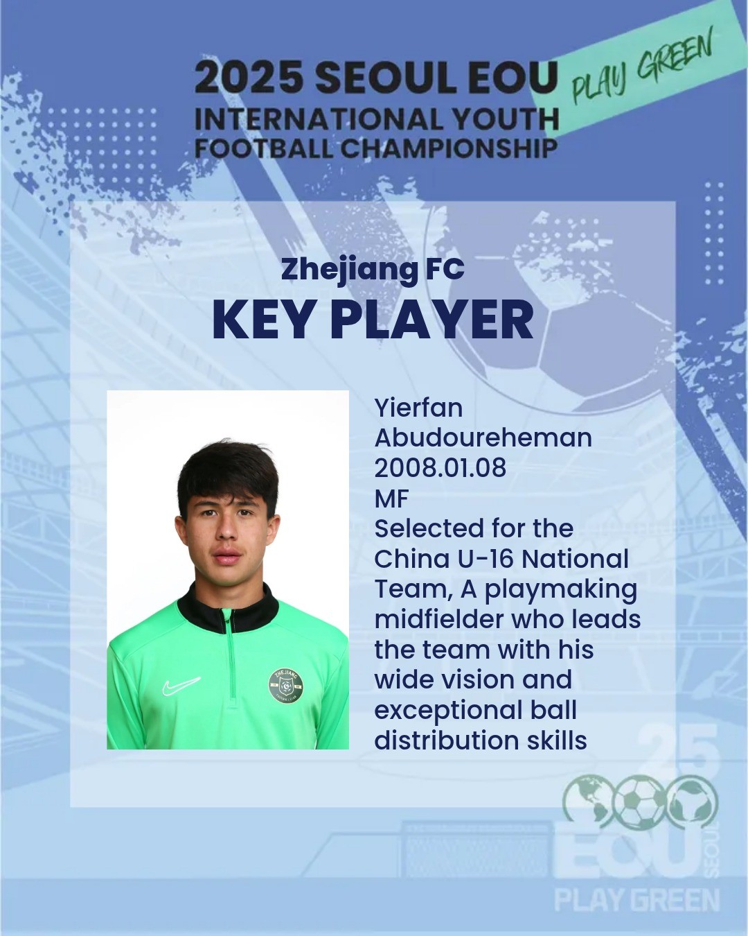 据首尔EOU国际青少年冠军杯官方消息,浙江U18全运队将参加今年的赛事。