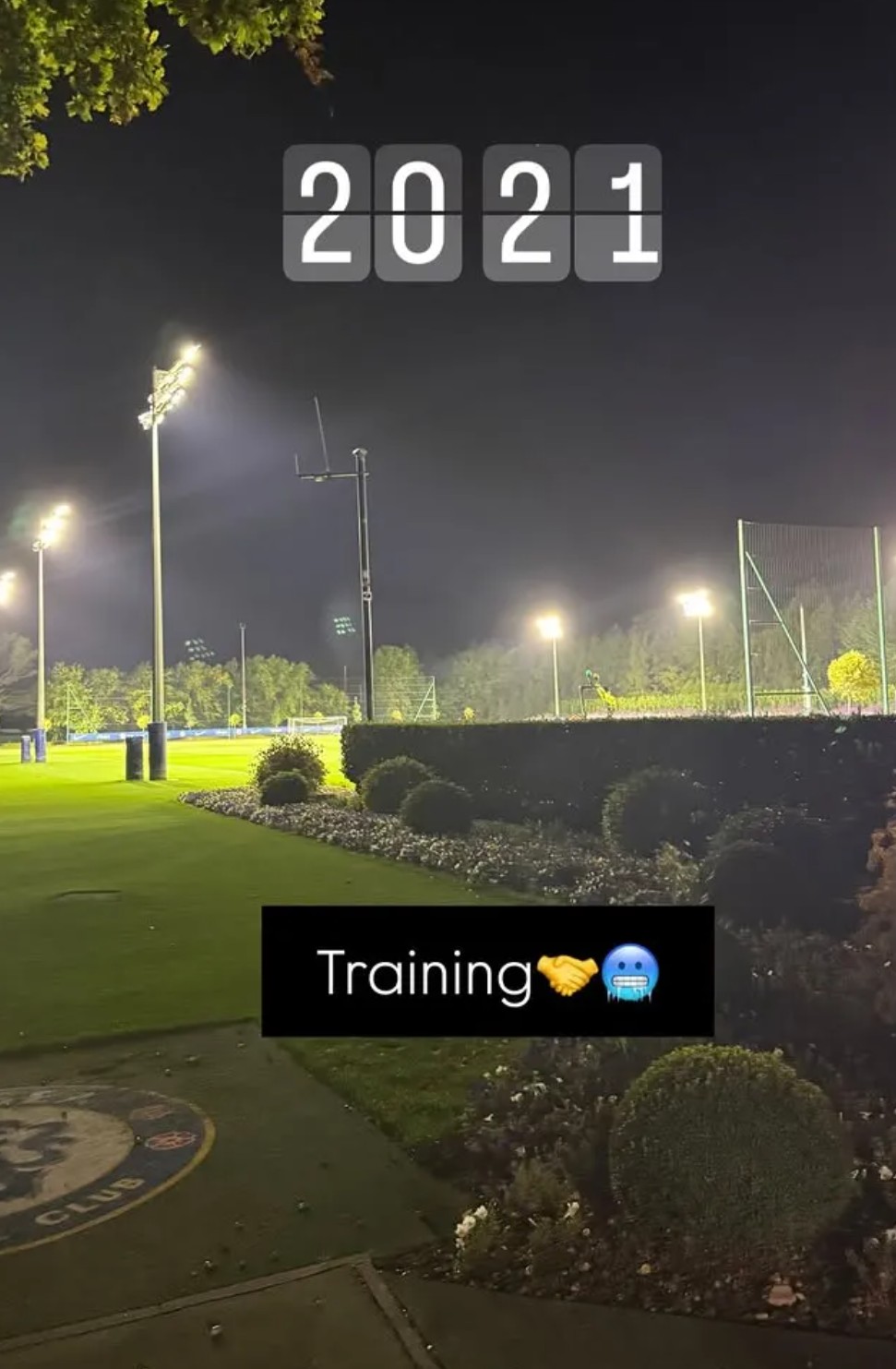 本周,斯特林在社交媒体上发布了一张他在秋季寒冷的晚上8点后独自在萨里郡切尔西总部训练的照片。