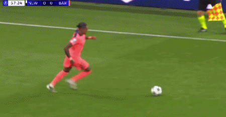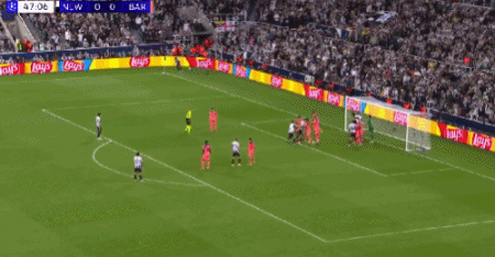 第40分钟,拉菲尼亚任意球打门,皮球没有压住