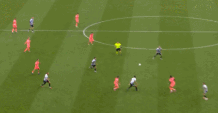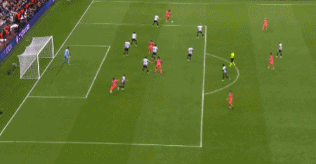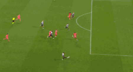 第90+5分钟,拉菲尼亚传中,奥尔莫打门被扑
