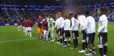 双方球员握手致意,比赛马上开始