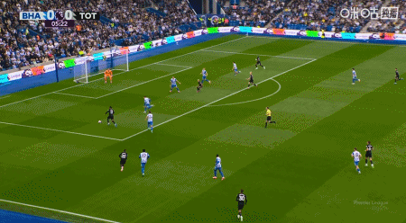 第31分钟,阿亚里左路一脚电梯球破门,布莱顿2-0热刺
