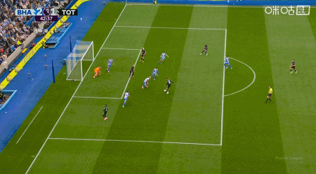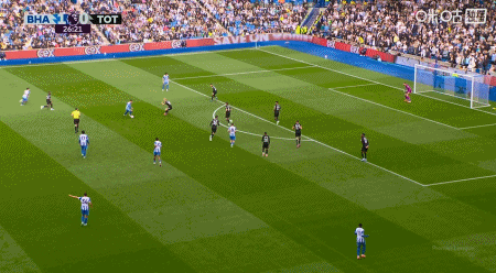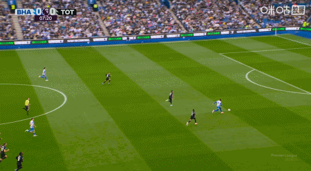 第8分钟,后场长传身后,扬库巴-明特单刀破门,布莱顿1-0热刺