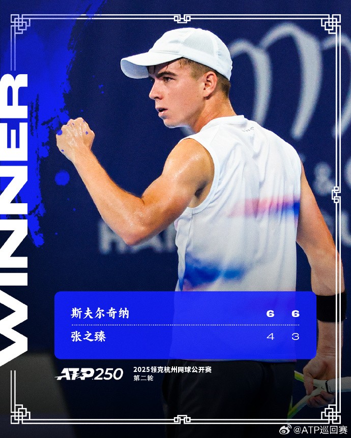 9月20日,ATP250杭州站男子单打第2轮,张之臻0-2(4-6、3-6)不敌幸运落败者斯夫尔奇纳。后者打进职业生涯第一个巡回赛男单八强,接下来他将对阵3号种子布勃里克。