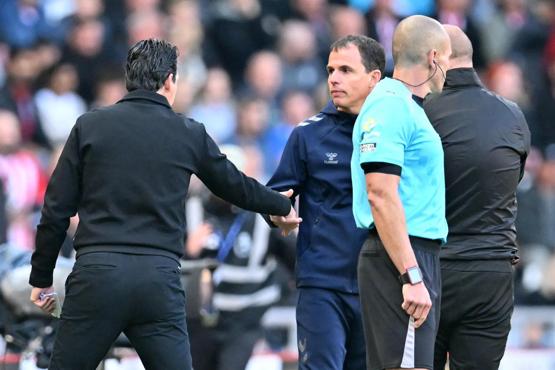随着比赛进入尾声,埃梅里在终场哨响前便走向桑德兰主帅勒布里斯握手,随后径直返回球员通道。此举被外界认为“打破主帅礼仪”,而不少球迷则解读为不祥信号。