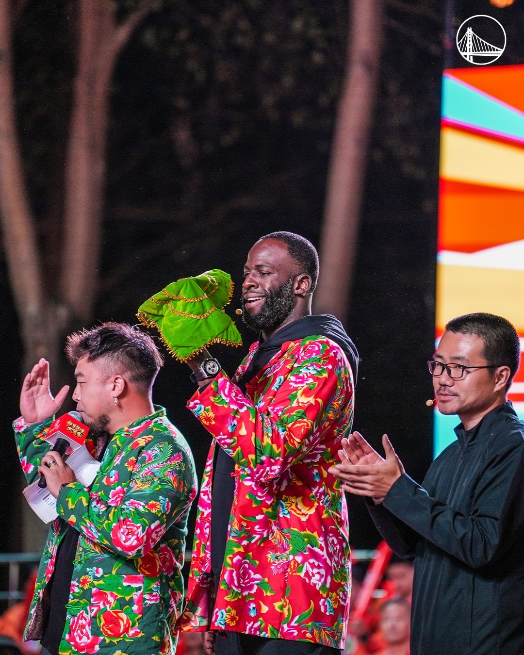 勇士球员德雷蒙德-格林这次中国行非常成功,他来到了辽宁沈阳受到了赵本山的款待,金州勇士队官方也晒出了追梦此次中国行的照片。