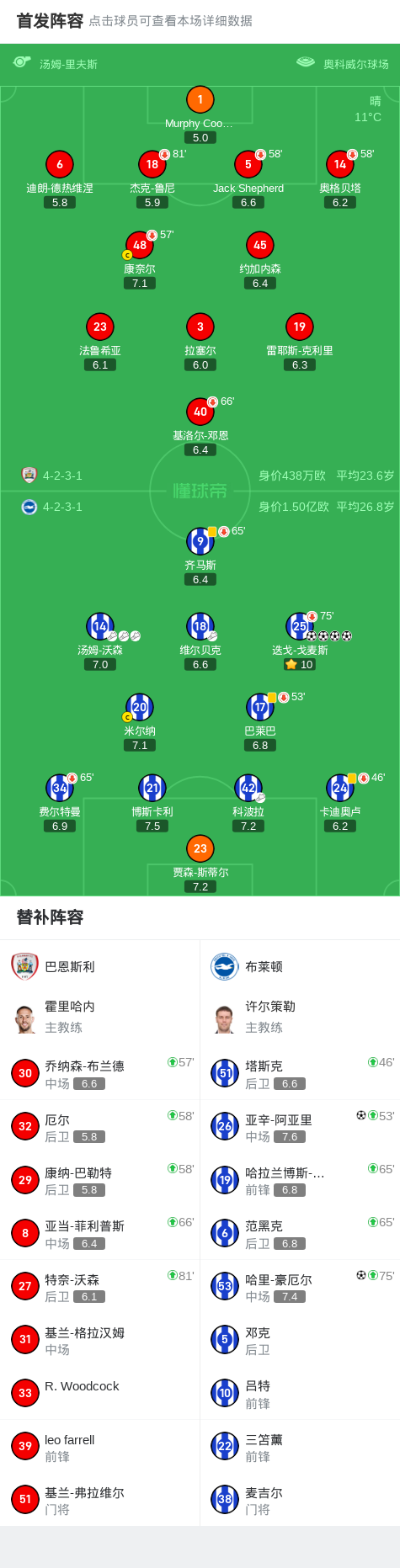 第68分钟,迭戈-戈麦斯前插推射破门完成大四喜,布莱顿4-0