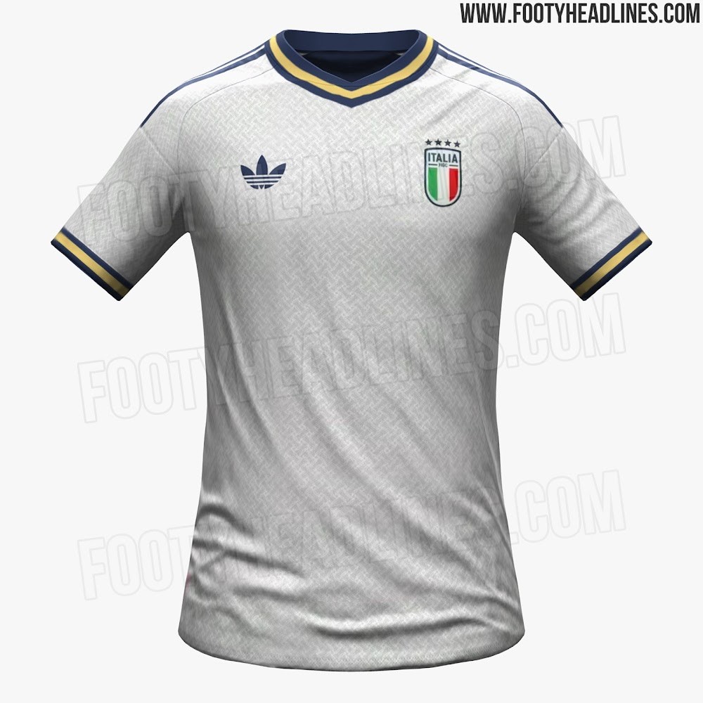 据球衣网站Footy Headlines报道,阿迪达斯为意大利国家队设计的2026年世界杯客场球衣已提前泄露。新战袍以“罗马柱”为灵感,将古典建筑元素与现代足球服饰结合,凸显意大利的历史与文化底蕴。