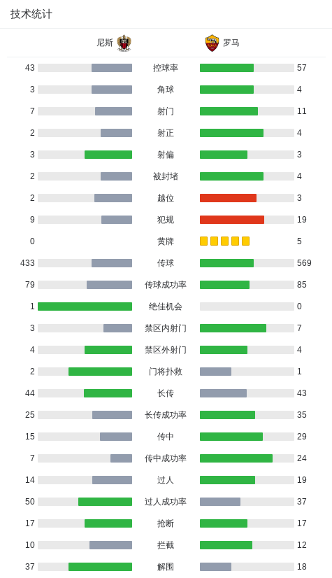 第55分钟,齐米卡斯传中,曼奇尼捅射破门扩大比分,罗马2-0尼斯