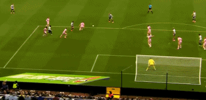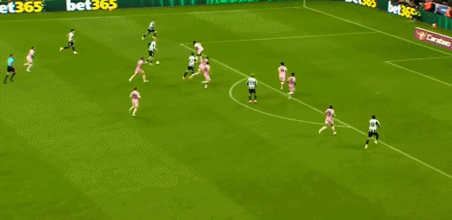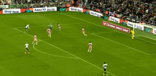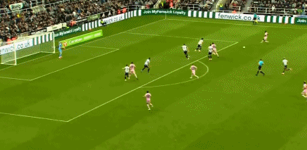 第75分钟,吉马良斯横传,乔林顿接球低射破门梅开二度,纽卡3-0!