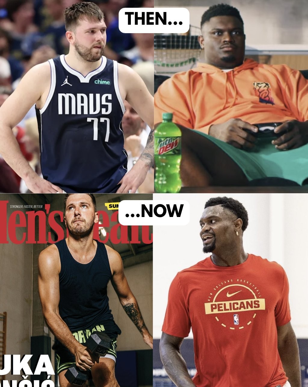 北京时间9月26日,美媒“NBAmemes”晒出了一张东契奇和锡安今夏身材变化的照片对比图。