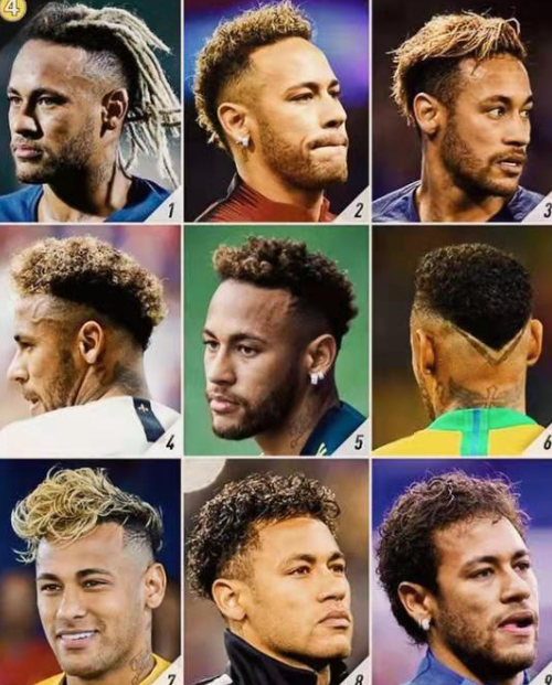 曾经,内马尔每换一次头型,都会登上头条,成为热搜。有媒体统计过,内马尔在一年时间内,最少要换9个完全不同的头型,来吸引关注。包括:V字头、黄色小爆炸头,以及牙买加脏辫等等。很多发型都是其自己设计,而他拥有多位专属的托尼老师,无论是洗剪吹、非主流、杀马特,还是其他造型,都能信手拈来。