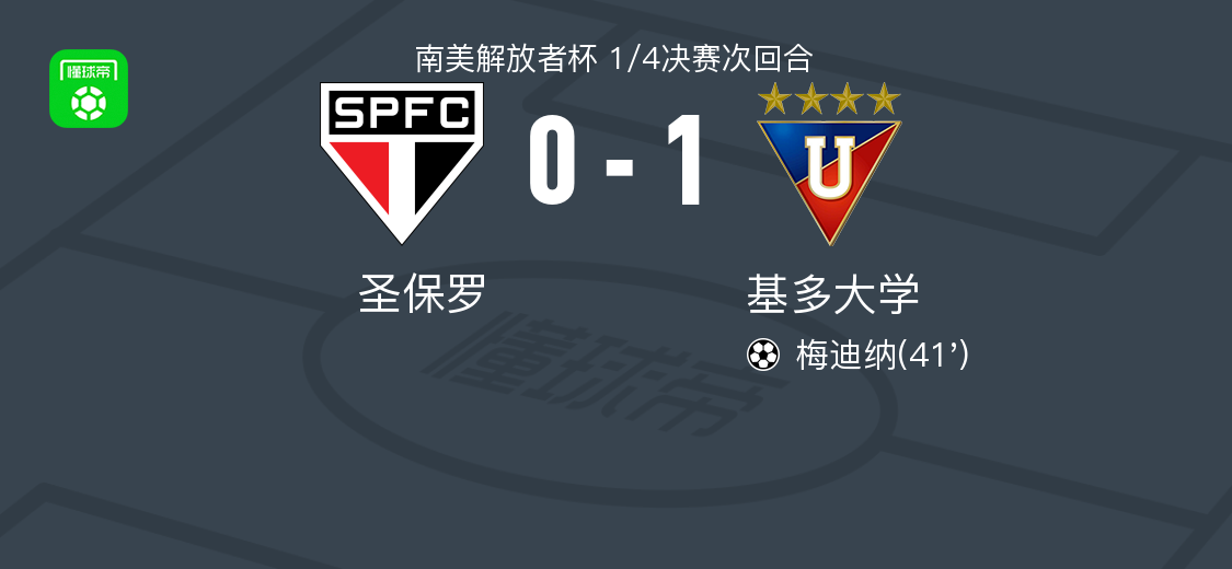 北京时间9月26日,南美解放者杯1/4决赛次回合展开较量,圣保罗迎战基多大学。比赛中,基多大学球员梅迪纳攻入一球,帮助球队取得领先。最终,基多大学以1比0战胜对手。两回合总比分基多大学以3比0淘汰圣保罗,成功晋级下一轮。