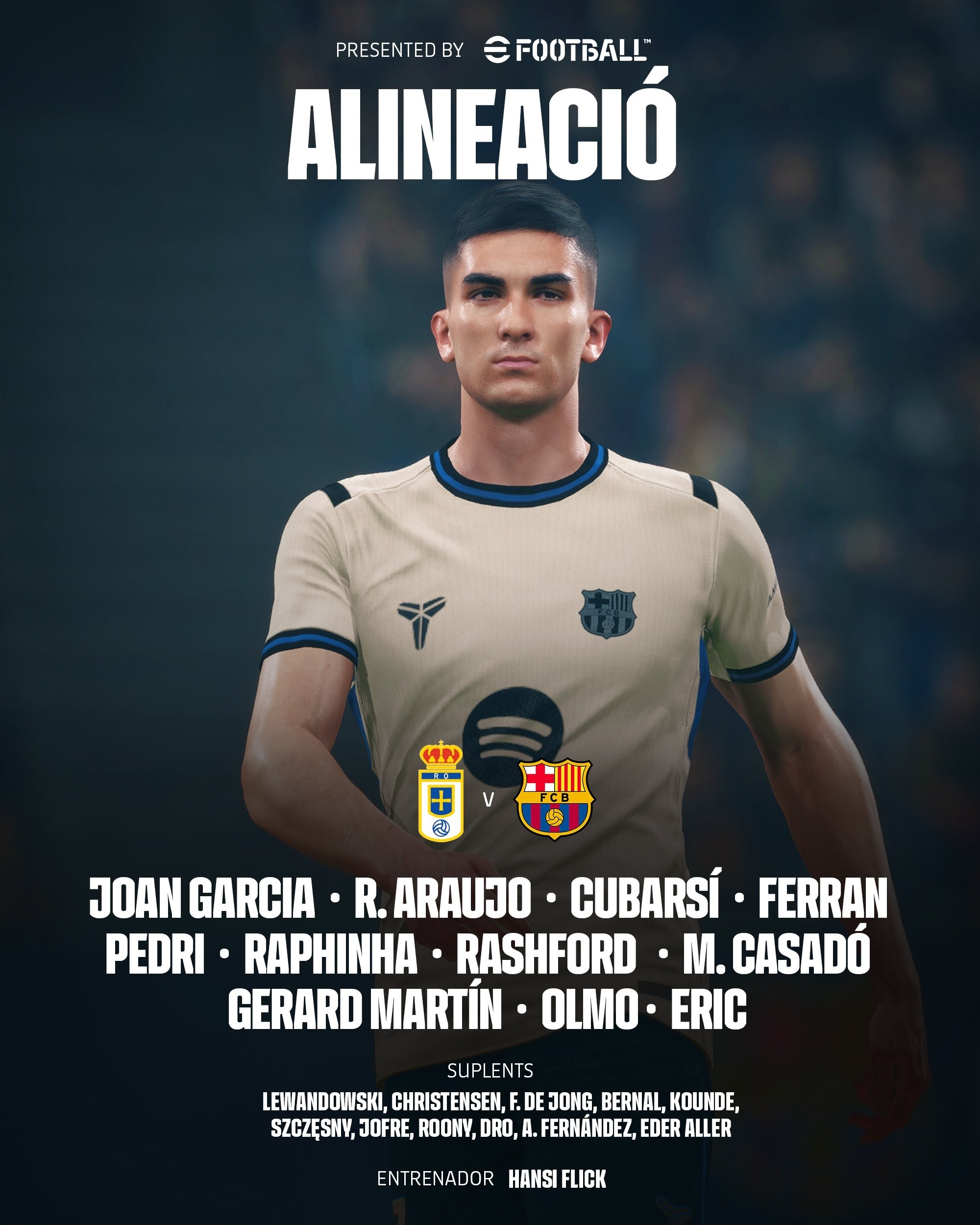 巴萨客战皇家奥维耶多:拉菲尼亚、拉什福德首发,佩德里出战