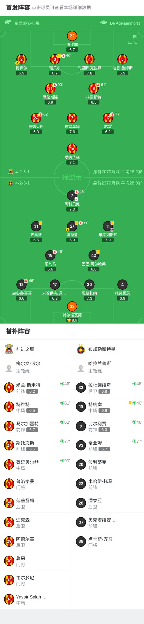第13分钟,布加勒斯特星球员阿利贝克助攻米库列斯库打入一球。