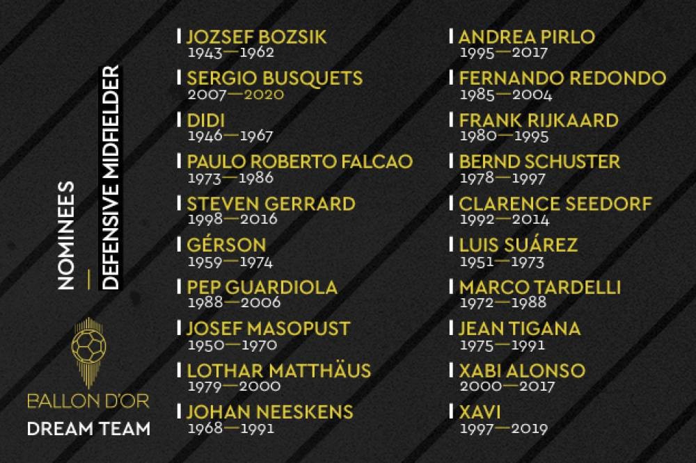 布斯克茨是20名后腰/中前卫里唯一的现役球员,最终进入梦之队一阵的是哈维与马特乌斯,进入二阵的是皮尔洛与里杰卡尔德,进入三阵的是迪迪和内斯肯斯。