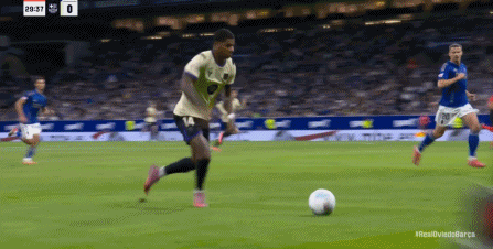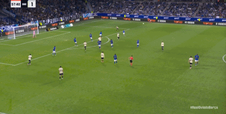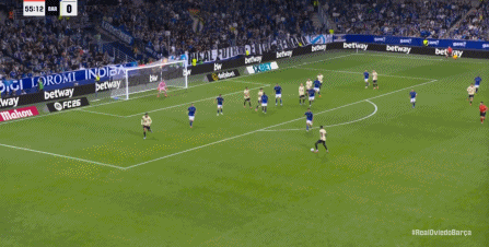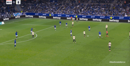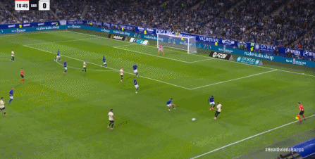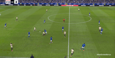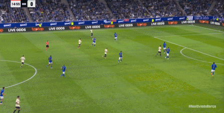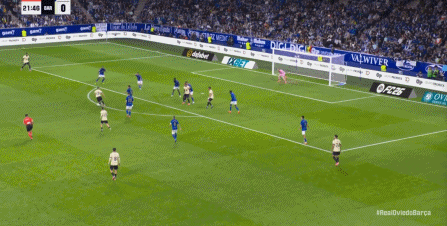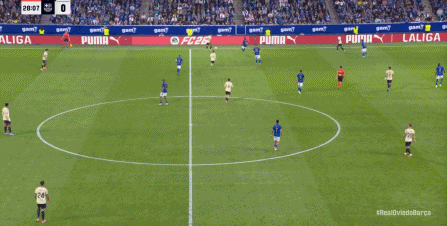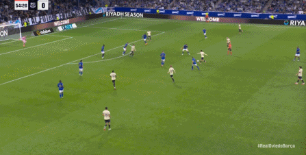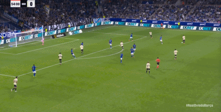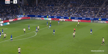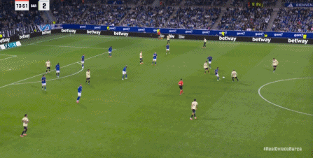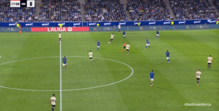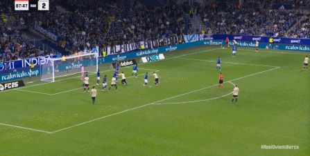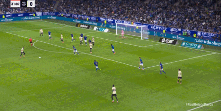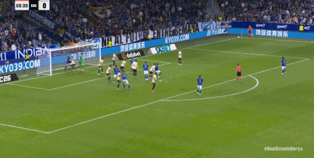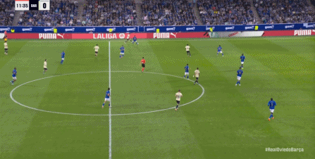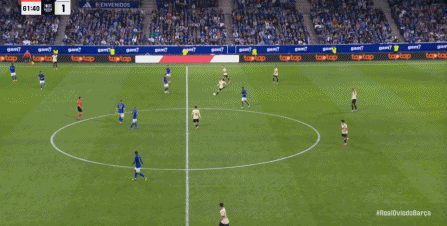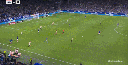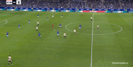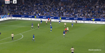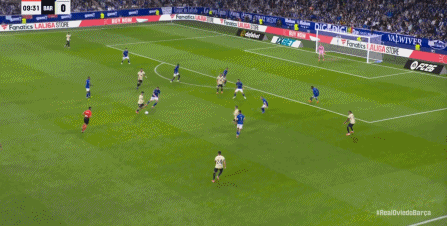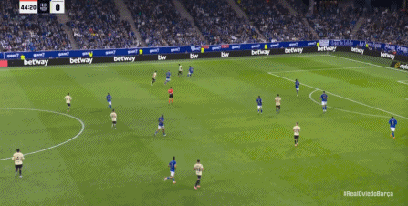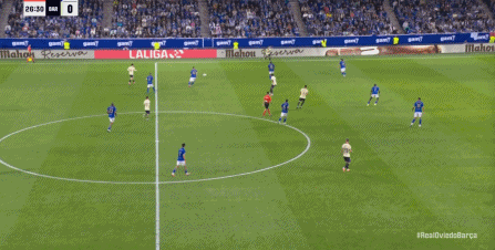 就显得稍好一些,但和开局阶段相比,打出的威胁次数明显降低,这就为奥维耶多在主场的低位防守提升了信心,迫使巴塞罗那只能顺势选择远射: