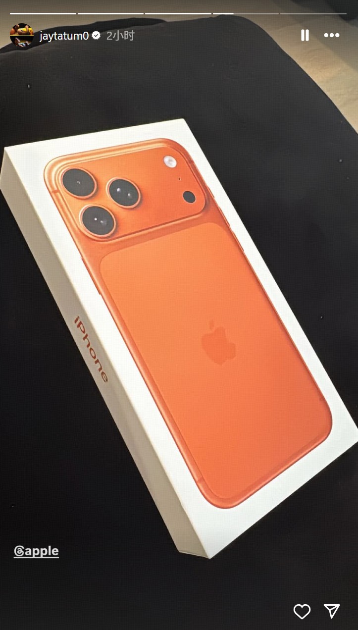 塔图姆展示了这款最新发售的iPhone17ProMax星宇橙配色,并艾特了苹果官方。