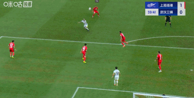 第57分钟,蒋光太门前撩射,皮球高出球门