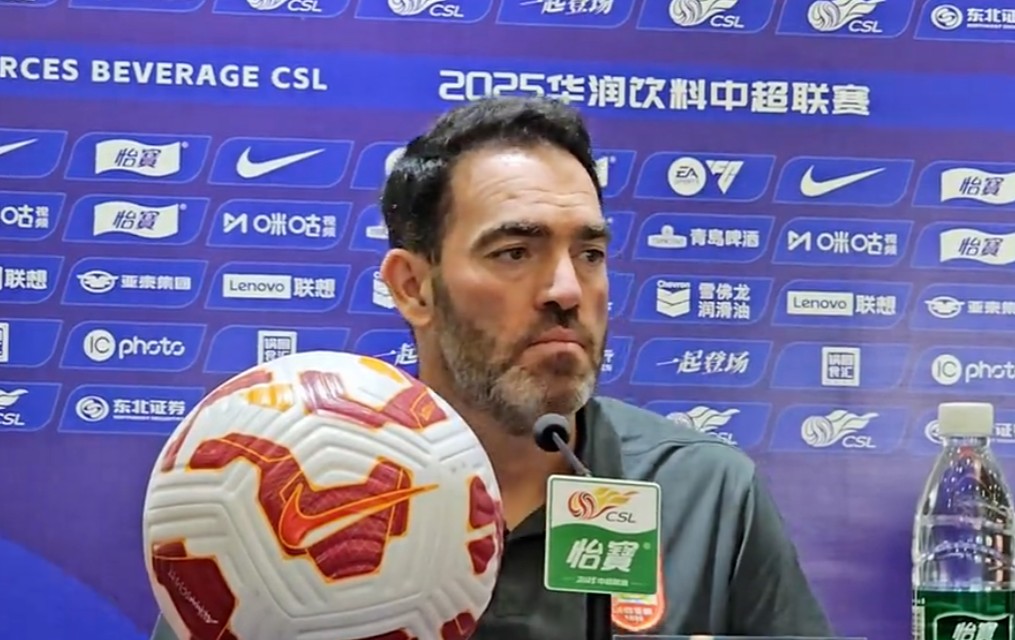 25日下午,长春亚泰主帅苏亚雷斯携球员王智峰出席了主场对阵青岛海牛的赛前发布会。