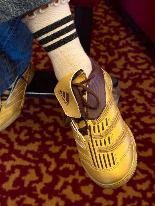 此外,阿迪达斯为她赠送了礼物。邦马蒂在利塞乌大剧院亮相时穿着一双为这一场合特别定制的阿迪达斯球鞋。