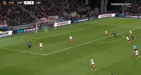 第75分钟,加扎尔做球,特斯曼禁区外一脚世界波直挂死角,里昂1-0