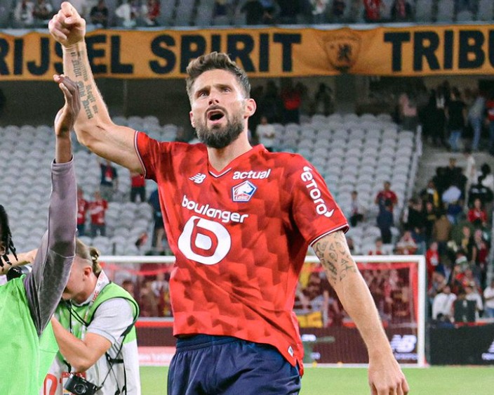 吉鲁今夏离开洛杉矶加盟里尔,赛季至今他代表里尔出场5次,其中4次首发,已经打进3球。