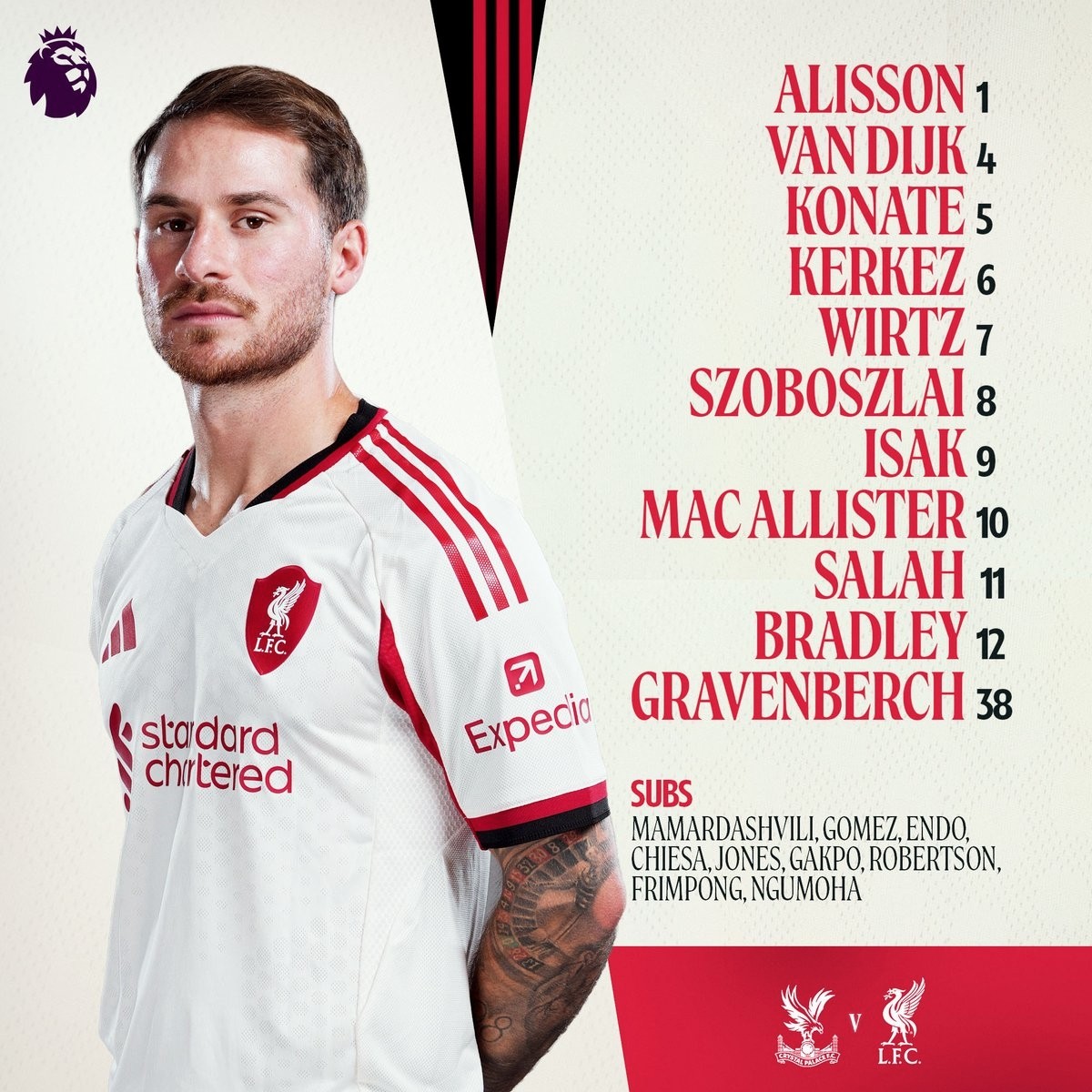 利物浦客战水晶宫:萨拉赫搭档伊萨克,索博斯洛伊首发