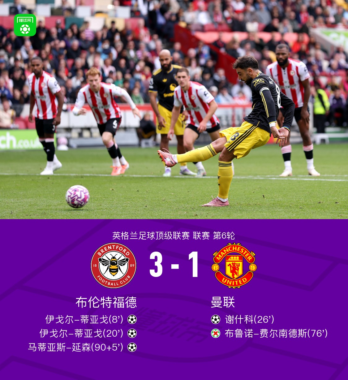 北京时间9月27日,英格兰足球超级联赛第6轮展开较量,布伦特福德坐镇主场迎战曼联。上半场,伊戈尔-蒂亚戈双响。谢什科扳回一城。下半场,布鲁诺-费尔南德斯错失点球扳平机会。比赛进入补时阶段,马蒂亚斯-延森锁定胜局。最终,布伦特福德以3比1战胜曼联,全取三分。