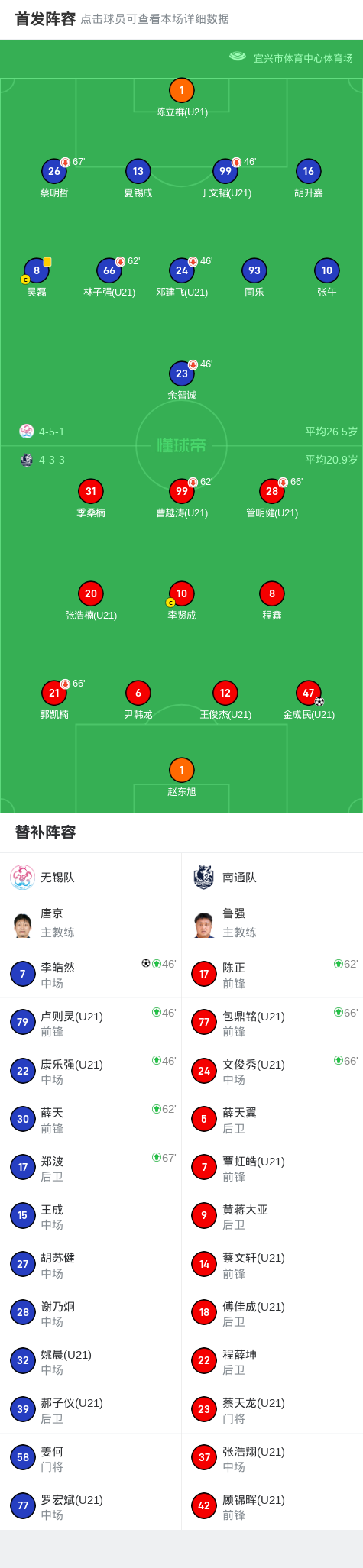 第55分钟,李皓然补射破门扳平比分,无锡队1-1南通队