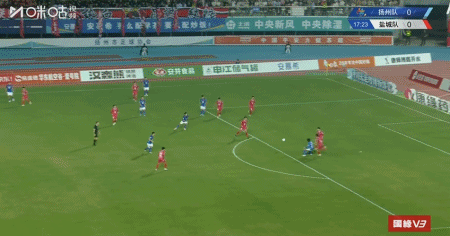 第72分钟,角球开出,蔡培雷头球破门打破僵局,盐城队1-0扬州队