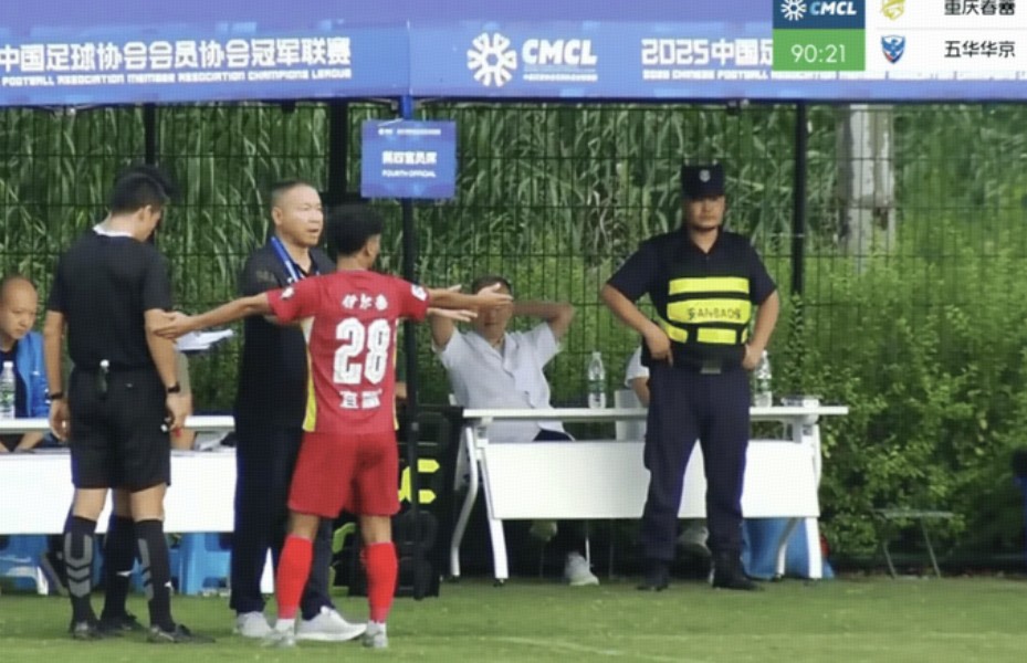 直至比赛第91分钟,裁判组才发现这一违规问题并着手纠正,要求五华华京18号球员吴琦豪下场,重新让9号张帅回到场内。重庆春蕾当场提出质疑。尽管裁判组采取了补救措施,但18号吴琦豪已在场上实际参与了近5分钟的比赛。最终,重庆春蕾以1-3的比分不敌五华华京。