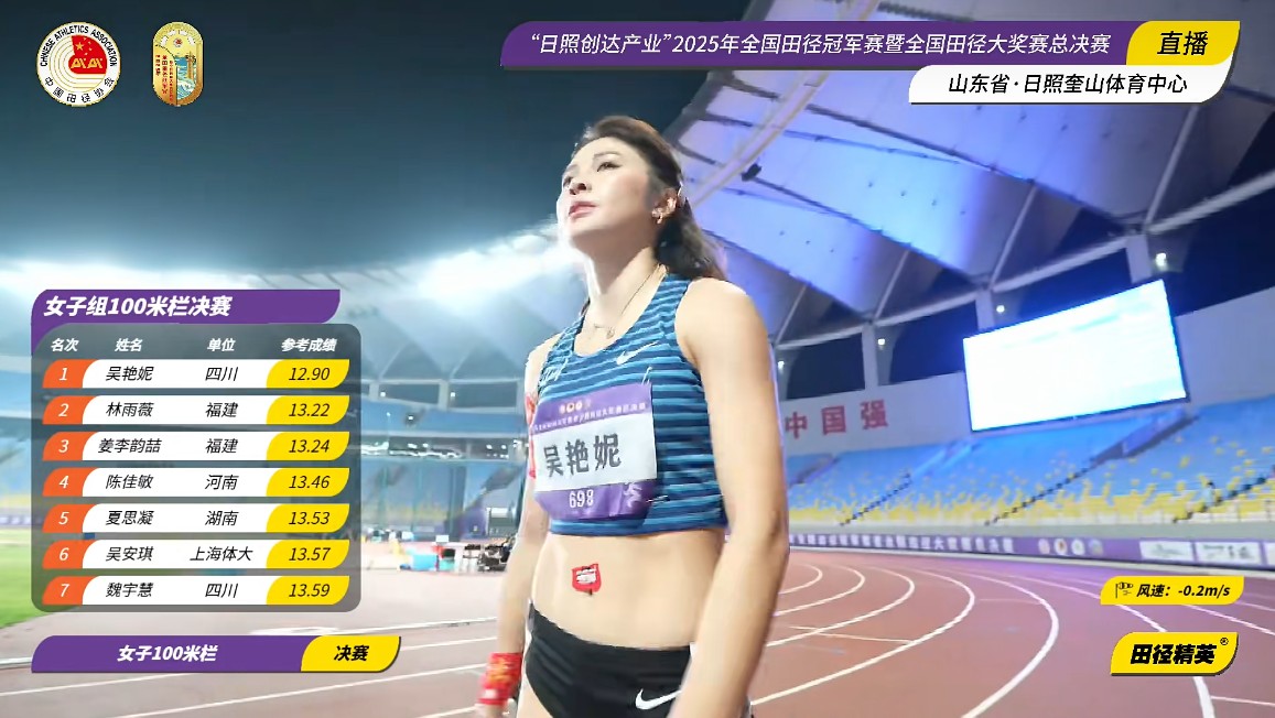 全国田径冠军赛女子100米栏:吴艳妮12秒90创造赛季最佳,成功夺冠