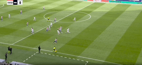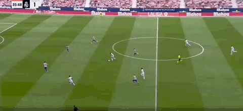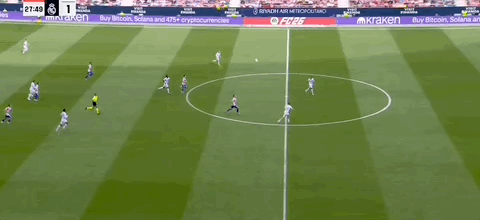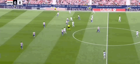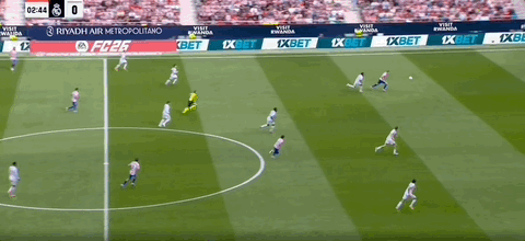 第34分钟,贝林厄姆断球后带球推进分球,维尼修斯传中被挡