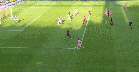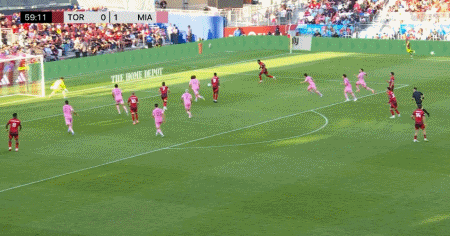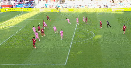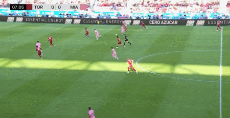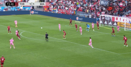 第45+1分钟,阿尔巴传中,阿连德头球破门,迈阿密1-0多伦多